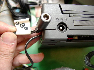 本体は1000円だったが、ACアダプターは2000円だったので買うのはやめてきた。普通に12Vかければよいらしいが、電源ジャックが特殊なので、自分の手持ちの電源が使えない。そこで分解して電源ケーブルを引き出し、汎用の電源ジャック(家にあった物、300円くらいだった)を付けて、ボディにドリルで穴を開けて引き出した。