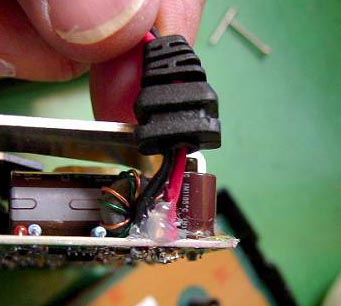大丈夫だとは思われたが、万が一接触してはいけないので、ホットメルトで固めてみた。あまりがちがちに堅めすぎると、またコードにむりがかかることになるので、少し余裕を持たせておいた。