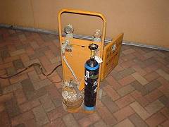 今回は、免許を取ってから10年以上たっているガス溶接でチャレンジしてみることにしました。この溶接機は岡谷酸素さんから借りている物。