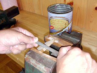自分が斜めになるのではなく,材料を斜めにして切削面が水平になるよう固定する。