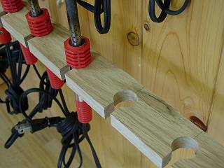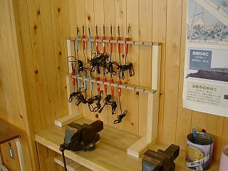 空き時間にはんだごてスタンドを作ってみました。余っていた2×4材料と,昔の教材の残り材で2段で18本のはんだごてが収納出来ます。上の段と下の段ははんだごての位置が互い違いになるように穴を開けたのですが,上の段の両側にはんだごてをさせないところができてしまったのはご愛敬。 2枚の板は,重ねた状態でボール版にて21mmのショートビットで穴を開け,丸鋸で溝を切りました。
