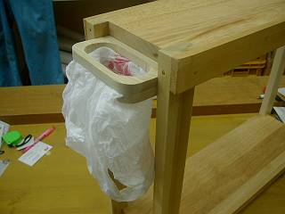 1年生木材加工でつくっているサイドテーブル用のオプションとして,ゴミ入れを製作