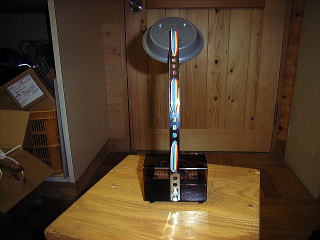 コの字型に曲げたアクリル板の中間あたりに、L字型に曲げたアクリル板をランプの首を止めるボルトで一緒にねじ留めした。