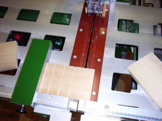 両側の側板と真ん中の柱?に棚板をはめる溝を引く。棚板と言っても、昨年度の生徒作品で余ったコルク付き合板を使うだけなので、5mmくらいの溝でオッケー、下から順に一度長さをあわせたら3枚ずつ加工て高さをそろえた。。
