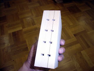 棚板は10毎重ねて加工して長さをそろえ、ボンドで接合して組み立てた。その後、裏側にもコルクベニヤを貼り付けて完成。