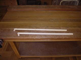棒の部分は一昨年度に1年生が作ったサイドテーブルの天板を切ったときに余った材料を帯のこで縦挽きし、ベルトサンダーをかけたもの。