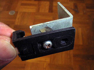 そこで、取り付けアダプタに穴を開けて、L字金具にねじ止めして、フロントブレーキのステーに一緒にねじ止めした。