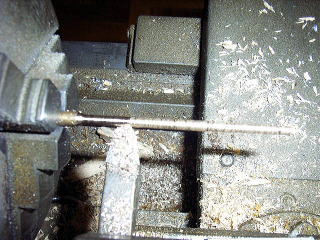 最初に先端を加工して、少しずつ送り出しながら周りを削っていく。アルミと違って、材料が折れることはなかった。