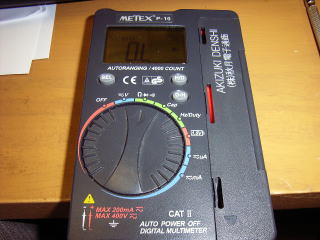 その結果、完全な動作をするようになった。1600円の安物テスターだけれど、テストリードも完全に収納されるし、オートパワーオフも装備しているので使いやすい一品。秋月電子のロゴまで入っているのはご愛敬かな。