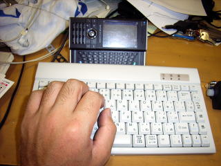 ちょっと見えづらいけど、右側の写真、黒光りしているのがコア。キーボードの下へ伸びている黒い線はアース。