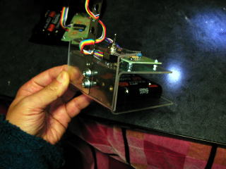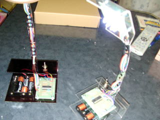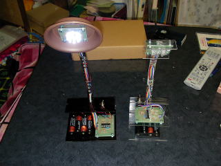 右側は、余っていた透明のアクリル板で作ったスケルトンモデル。ランプシェードもアクリル板で作った。