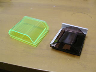 反射板の接合部は、きちんと平らに止まるように、あわせの部分を現物あわせで削った。(左は削る前、右の写真が完成したもの)