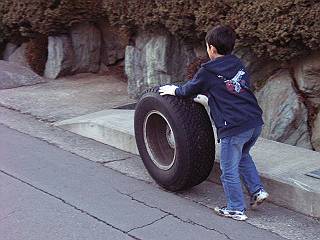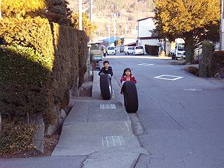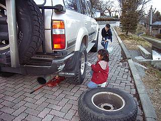上の息子はスタッドレスのナット締め、下の娘はナットはずしを行った。