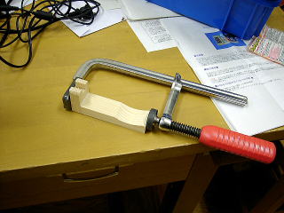 長い方はベルトサンダーでRを削りだしてさじの部分が収まる場所を、短い方は柄を載せる溝を切った。