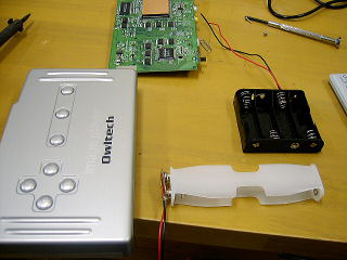 本来は、ACアダプタを使用して映像を出力するのだけれど、物理的な可動部もない分、消費電力も少なかろうから。電池ボックスを抱かせてやればそこそこ持つでしょう。