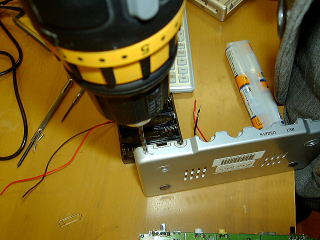 電池ボックスからのコードはふたの横にドリルで穴をあけて入れ込む。