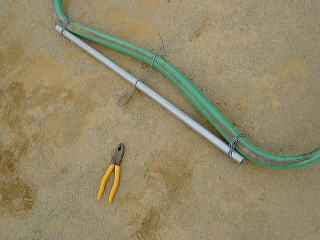 結局鉄パイプがずれて外れてしまうので、この方がよかった。接合部を上からずれないように2重に締め付けてある。