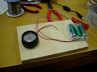 落っことして壊れてしまった自転車用のLEDランプを使ってみようと考えた。しかしこのランプはスイッチの切換で、1灯、4灯、全灯、点滅と切り替わるようになっている。