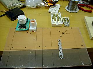材料は、ここのところよく使うPET。2mm厚のものを台座とセンサー&ランプ取り付け部に分けて作ってみた。