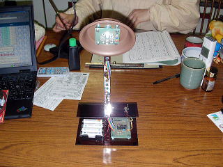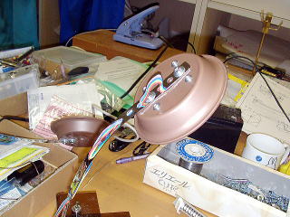 生徒の作った物はランプシェードの穴あけがずれていて、基盤が取り付けられなかった。リード線はそのまま使おうとしたため、取り付け位置をずらして、少し短くした。