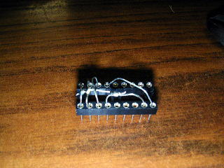 本来PICが刺さる部分に、さらにICソケットをさして、そこへ抵抗などのリードを使って配線をした。
