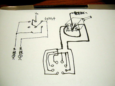 本来は必要ないのだけれど、8本の線をココナッツと同じに配線し、スイッチの部分で切換とした。