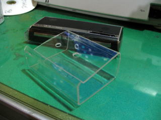 こちらはPET材。角を切り欠いて3方を折り曲げた。