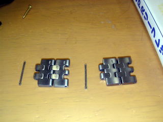 今まで全く気づかなかったけれど、時計のバンドにはピンを抜く方向に矢印が入っている。 小さな真鍮釘を打ち込んで抜き取った。 抜いたコマと割ピン。つなぐときは矢印の反対側から差し込んでハンマーで打って留めた。 無事に使えていてありがたい。