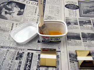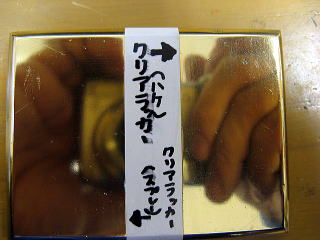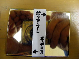 | 作業 | 家でピカールを購入する。たまに時間をとって磨いてやることが必要。銀の食器などを使っているお城では、執事が磨いているが・・・たまには気分転換にこういうのもいいかも。 | 一度塗ってから30分放置後、拭き取って完成。表面にポリマー(プラスチックのようなもの)が膜を作る。車に使われているもの。 | 刷毛でたらさないように塗る。乾燥には15分くらいかかる。 | 並べておいてスプレーする。乾燥には15分くらいかかる。 |
