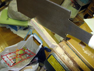 時間もあまりないので、機械で切れるところは切ってから両刃のこで切断。