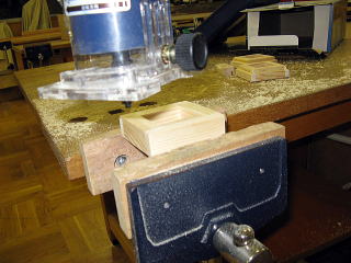 丸鋸で板をカットして、底板を入れる溝をひく。どちらも1年生のあまり材を使用。