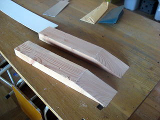 学校で余っていた(先日の耐震工事の際にもらっておいた)材木を斜めに切る。