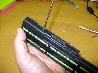 まずは、オークションで落札したジャンクのバッテリーをばらす。この電池を外して代わりに外部からバッテリーをつなごうという計画。ちなみに、このバッテリーは200円で落札して送料が160円。