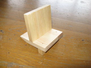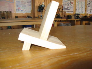 材木屋さんに見せるので,何かサンプルをということで手近にあったパイン材を使ってこんなスタンドをつくってみた。のこぎり引き・かんながけ,釘打ち,組み立て等の基礎的な技能を身につけるための練習材という位置づけ。