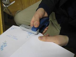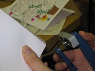 それを、90度回して針を打てるホッチキスを使ってとめて仕上げる。