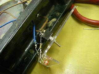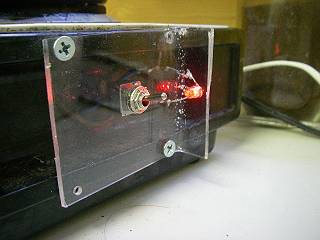すぐ上に発熱部があるので、かなりの高温になる。 そこで、スイッチとLEDを横に取り出して取り付けた。