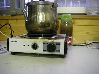 LEDは前から見ることができるように、曲げた部分に取り付けた。 これで安心して、お湯を沸かすことができそう。