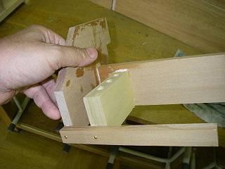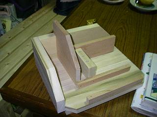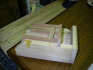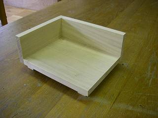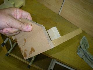 中へつける部分の加工。ボンドと釘で組み立てるが、組み立ての順番を間違えると釘が打てなくなる。
