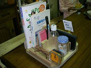 一番後ろにはクリップでメモスタンド。そのすぐ前にはPDA(生徒だったら携帯ゲーム機か)。