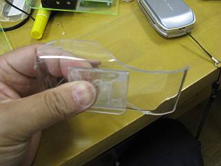 現物あわせで けがきをして万能ばさみで切って曲げていく。
