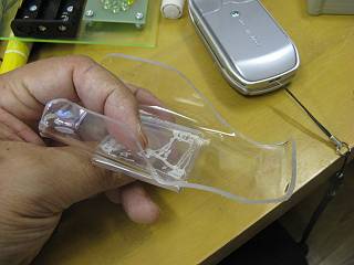 自分の携帯電話(advanced W-ZERO3[es])のホルダーを作ったところ、普通の電話でもいいねと共鳴していただいたので、2つ折り携帯のホルダーを作ってみた。