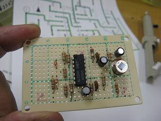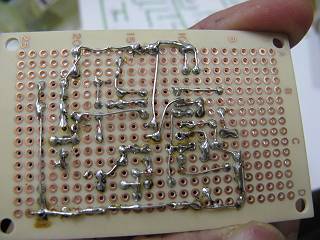 このパターンを、穴あき基板に配置して作ってみた。