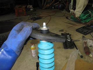 しかし、昼までかかってもすべてのナットを外すことができない。とりあえずスプレーのオイルをかけて浸透させる。