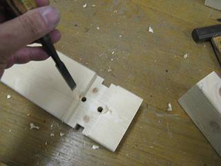 これは、脚を金具に固定するための鬼ナットを埋める部分。