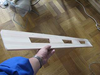 材料は技術室の外に置いてあった、垂木をかんながけして使用。 長さ110cm、塗装はクリアラッカーのスプレーで。