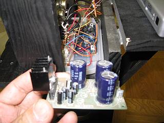 右側の写真では、電解コンデンサーが空中配線されています。参考にさせてもらったwebサイトでは