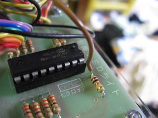 ピン配置は、基本的な部分は同じ。内部の発信装置を使い、Aポートに外部からの入力をつないだ。