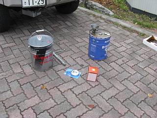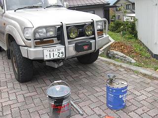 最後にランクル。ペール缶で買っても3回分はない。オイルをどか食いする愛車。