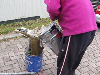 ついでに、たまった廃油を引き取ってもらった。こちらは24L(ペール缶1つと角缶1つ)で500円。