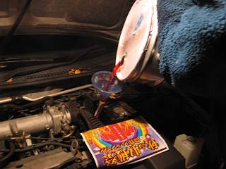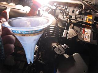 ATFはレベルゲージ用の穴から注入する。
